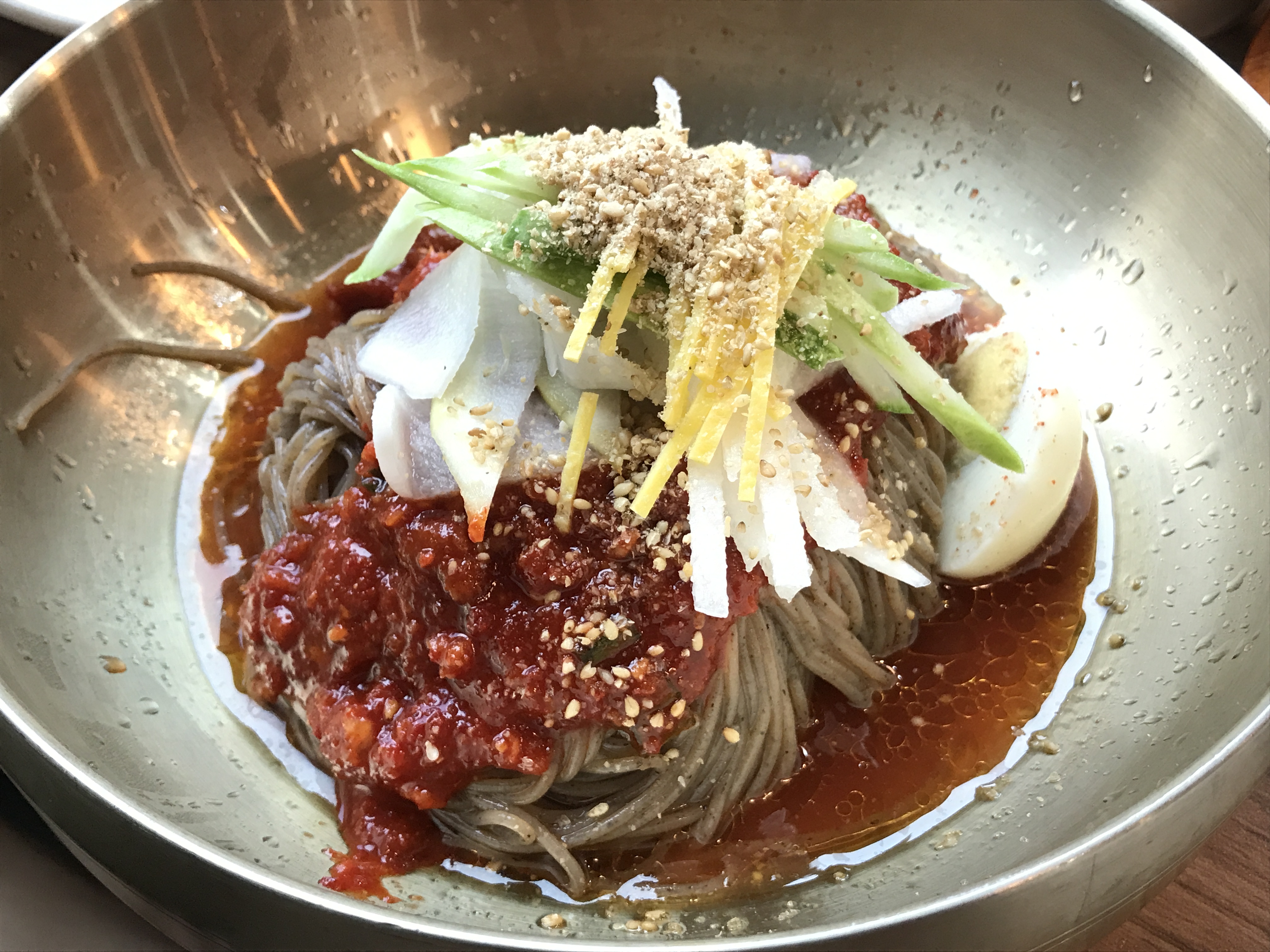 비빔냉면 : 언제나 맛있다. 황태가루(?)가 씹히는 듯, 식감이 느껴지는 양념. 매콤달콤한 일반적인 비냉과 달리 자극적이지 않음. 9.5/10